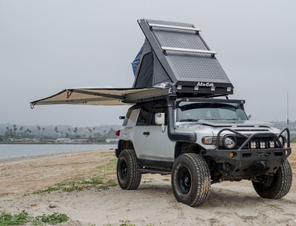 Dzięki solidnej aluminiowej obudowie namiotu istnieje możliwość zamontowania naszych belek ładunkowych Alu-Cab. Oznacza to, że możesz pakować duże, nieporęczne przedmioty na namiot. Niezależnie od tego, czy jest to panel słoneczny, stół kempingowy, kajak, rower górski , namiot ALU-CAB Gen 3.1 umożliwia transport sprzętu na dachu, gdzie w innych namiotach nie istnieje taka możliwość.