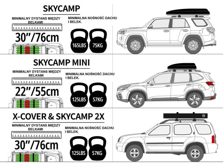 Dokładne opisy i dane techniczne poszczególnych namiotów można zobaczyć na oficjalnej stronie Ikamper: https://www.i-kamper.pl/namioty-skycamp/